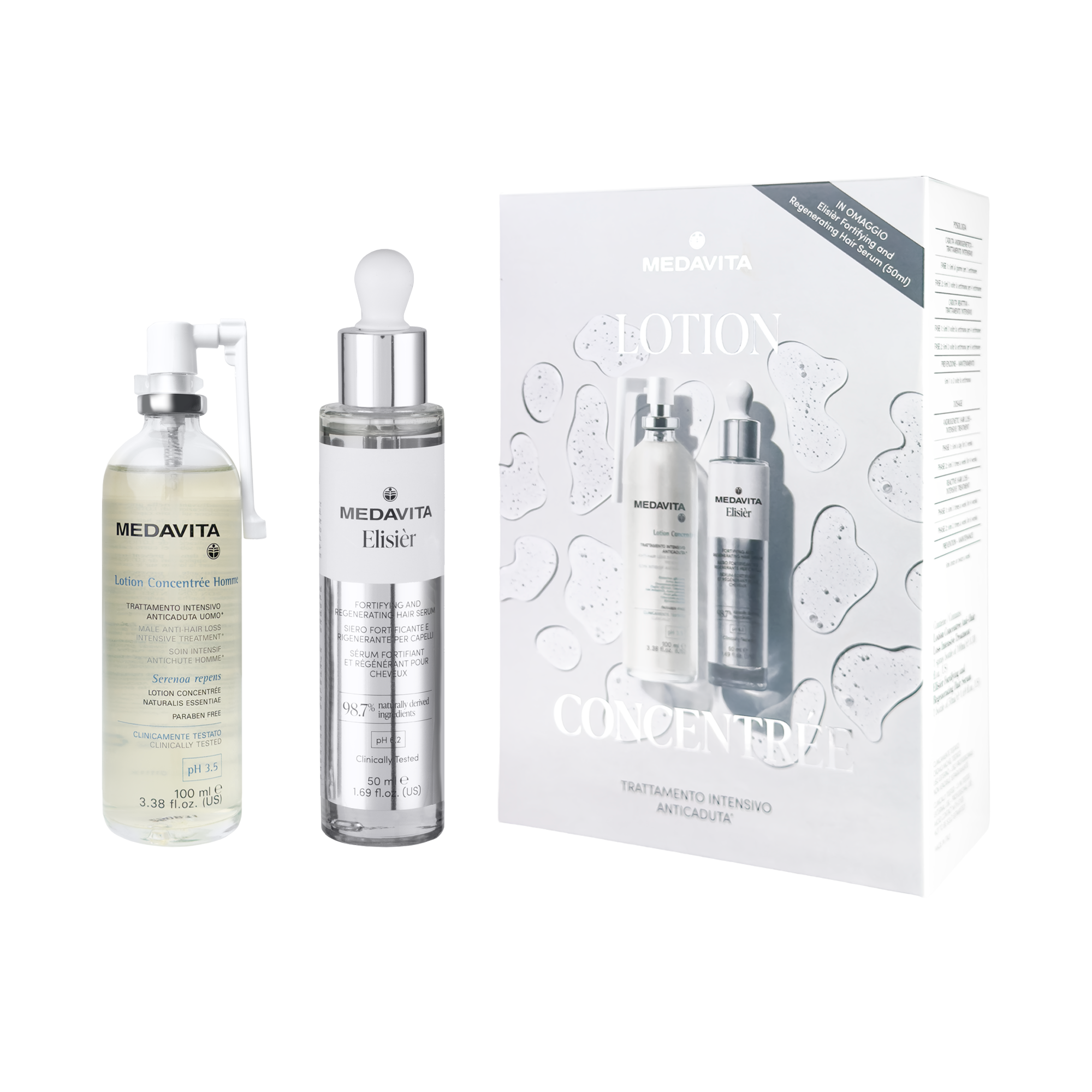 Набір для профілактики та боротьби із випаданням волосся / Medavita Lotion Concentrée & Elisièr (спрей + сироватка)