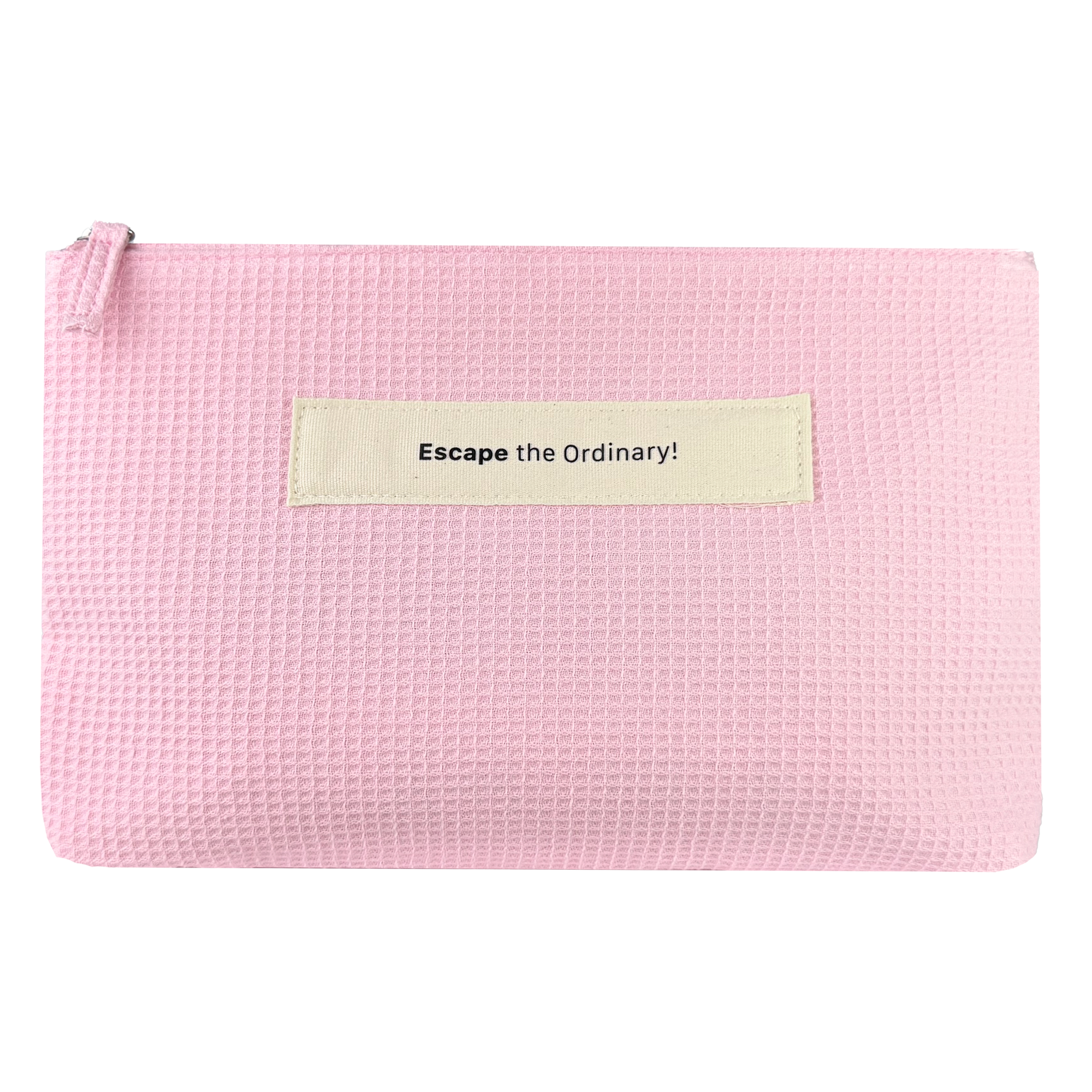Доступна в четырех нежных оттенках, каждая косметичка украшена вдохновляющей мотивационной надписью.