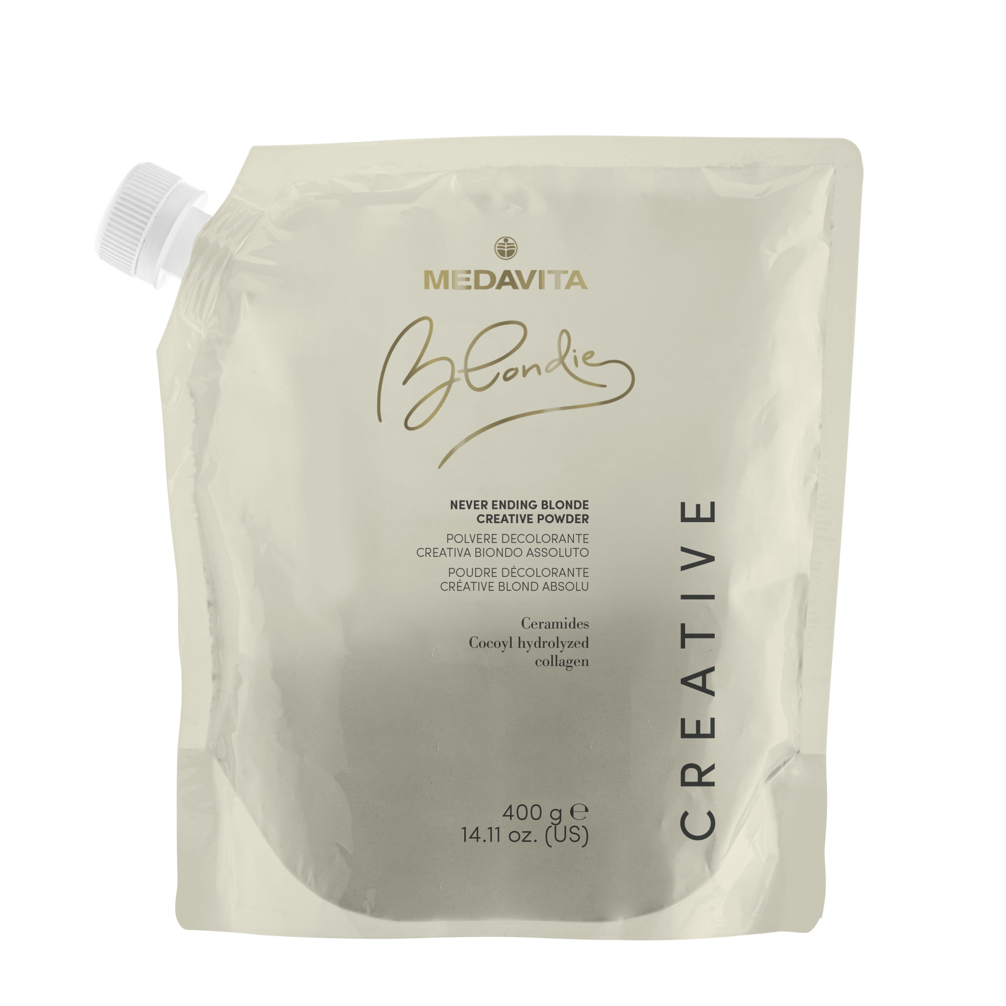 Пудра креатив Medavita Blondie Never ending blonde Creative Powder – безпилова пудра зі світло-блакитним пігментом. Ідеальна для нейтралізації насичено-золотистого фону освітлення. Найкраще використовувати на темних відтінках блонду (до 6 рівня). Підходить для натурального та фарбованого волосся