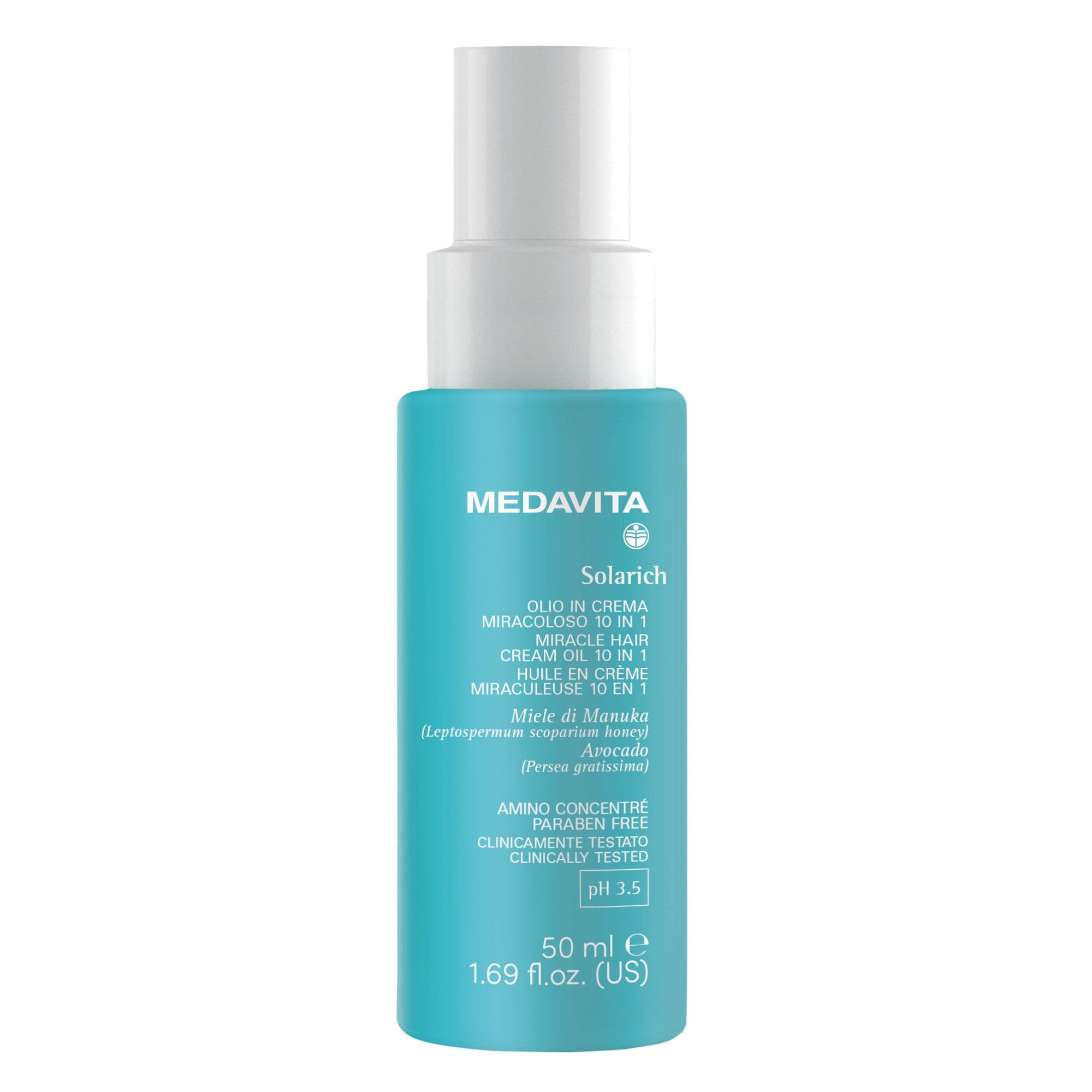 Крем для волосся 10 в 1 із дзеркальним ефектом (pH 3.5) — захисна крем-олія з ефектом розплутування волосся, 10 в 1. Підходить для застосування до та після перебування на сонці. Завдяки наявності фільтрів UVA/B зберігає структуру та колір волосся від впливу сонячних променів. Її текстура, одночасно насичена й легка, забезпечує інтенсивне живлення волосся, не обтяжує його. Зволожує, додає блиску та робить волосся слухняним, захищаючи його від впливу сонця, морської солі, хлору, вітру та інших атмосферних чинників.